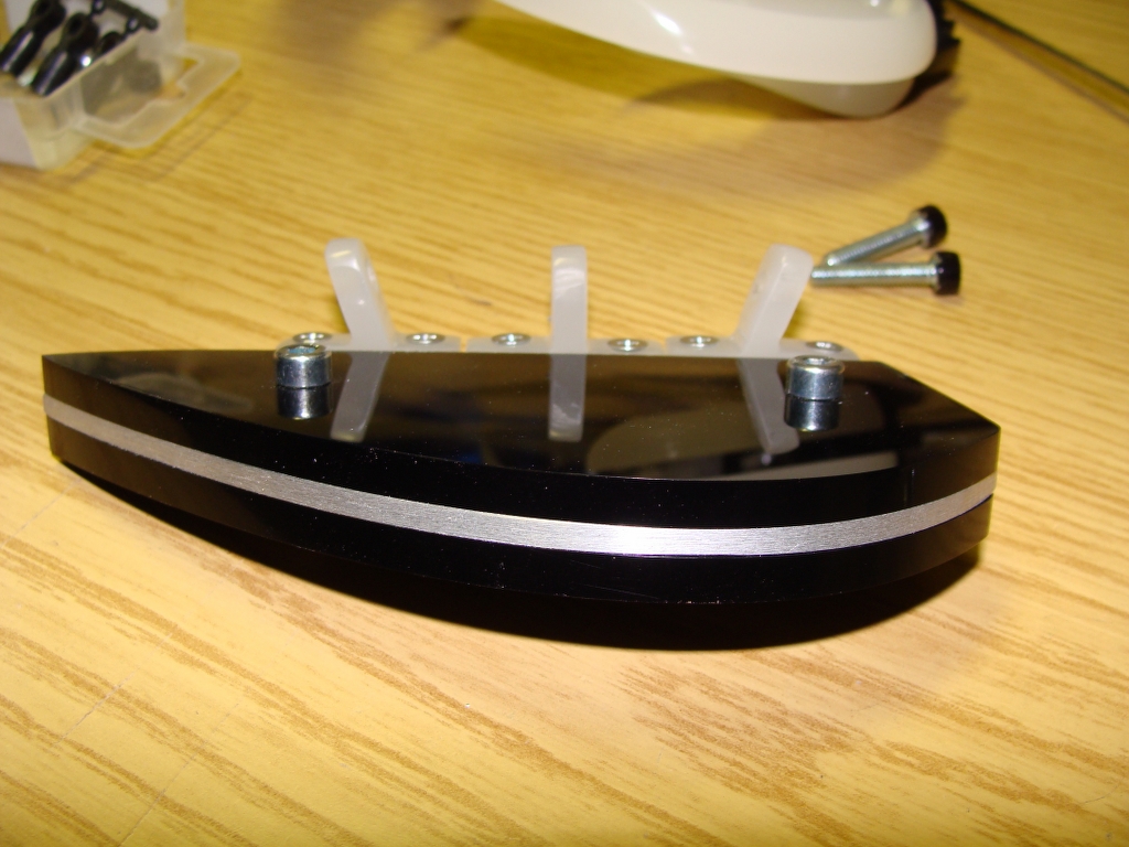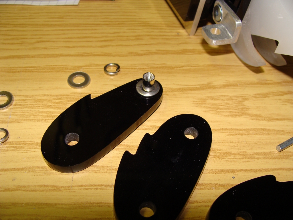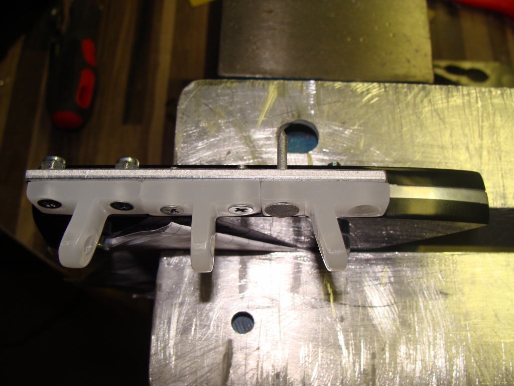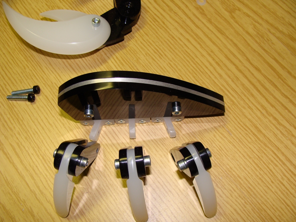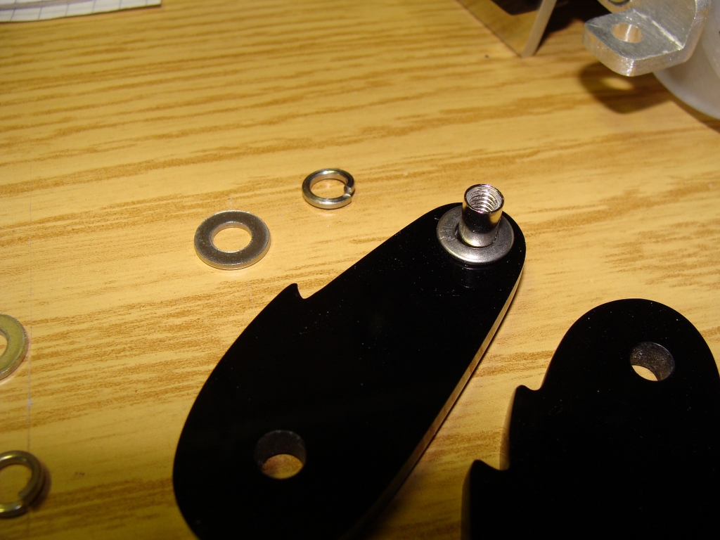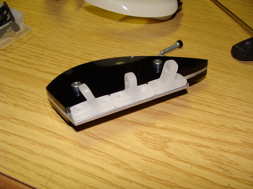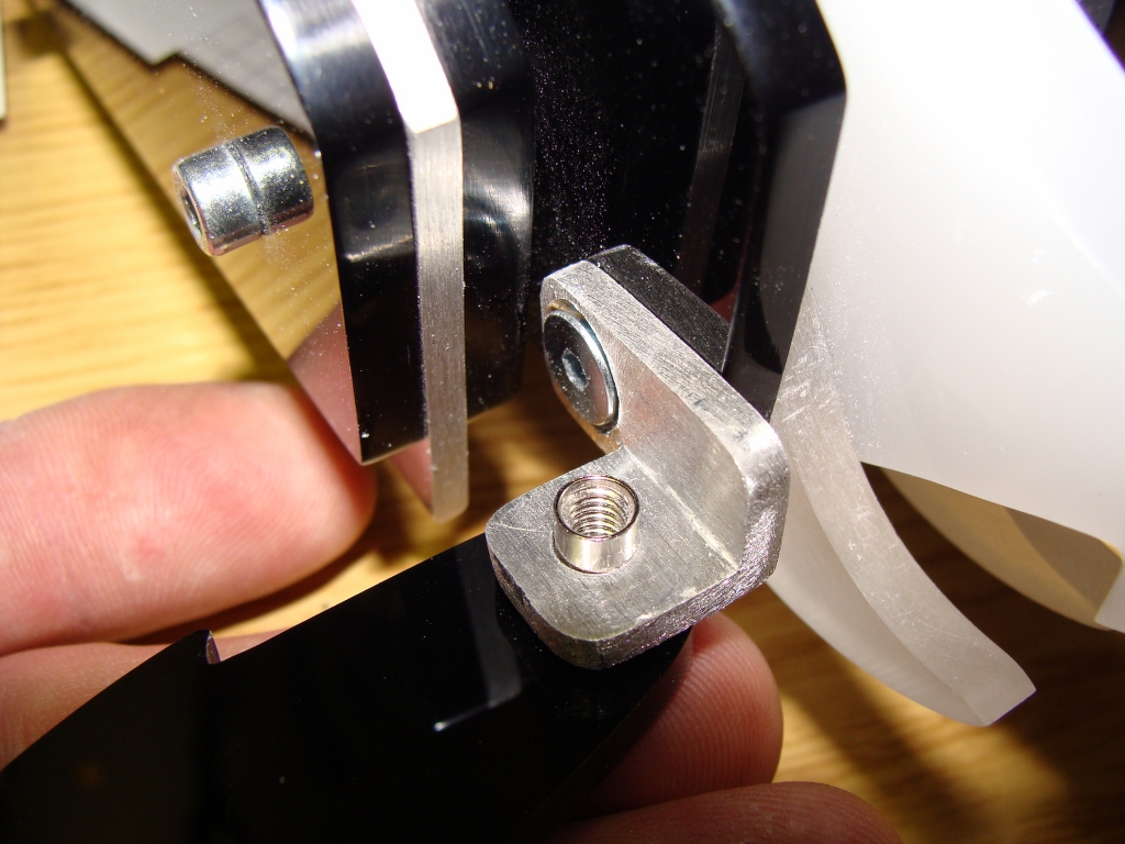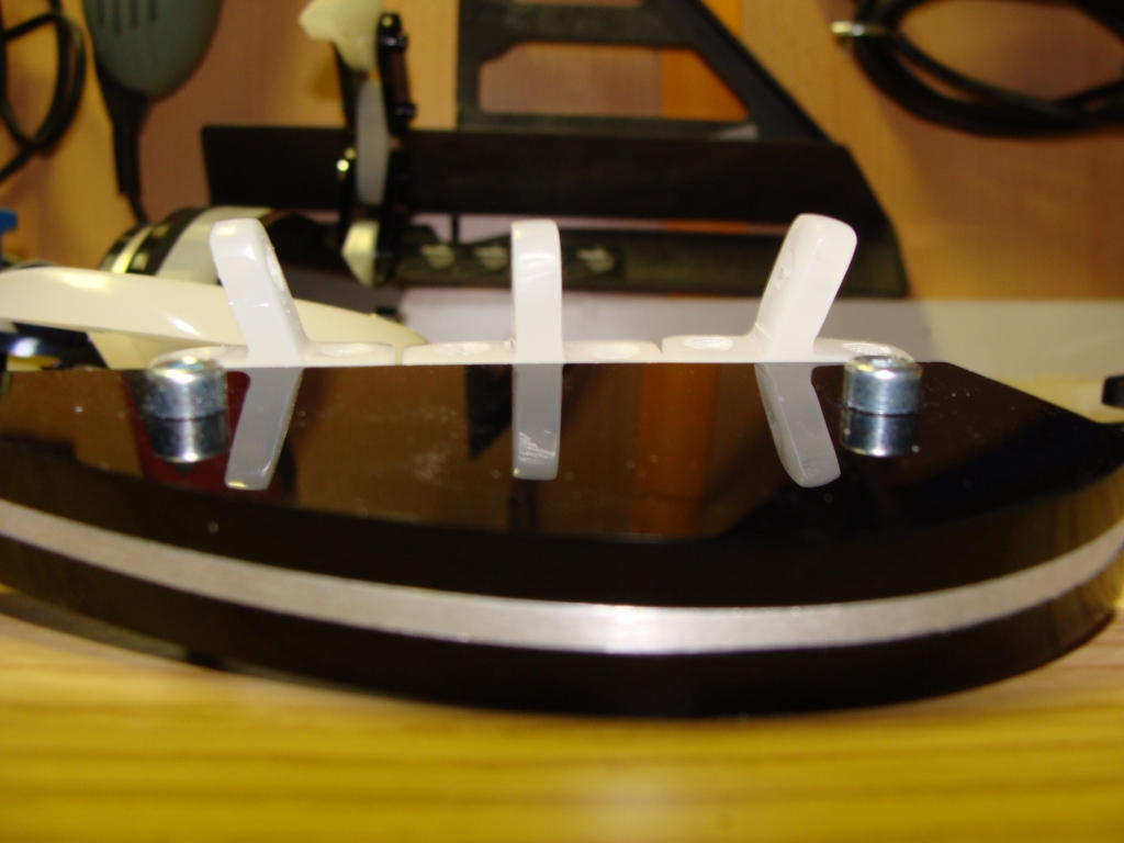 1. Du bringst die Buchsen in den Freiräumen zwischen dem Mittelteil und den Fußhalterungen an und die Platine dann irgendwie unten drunter.