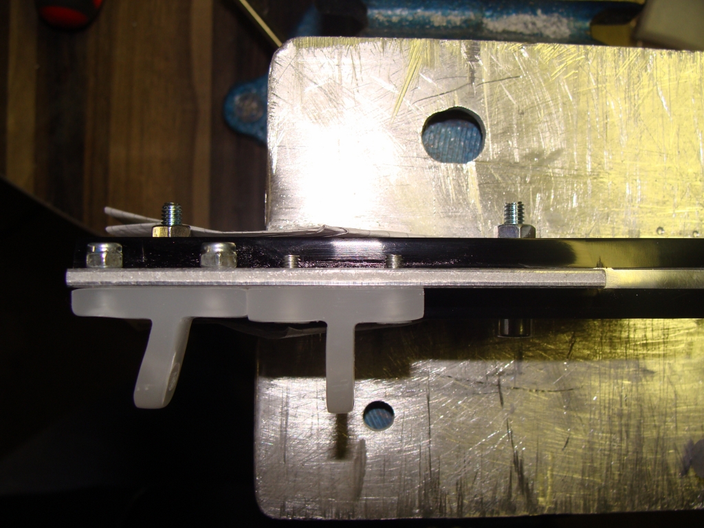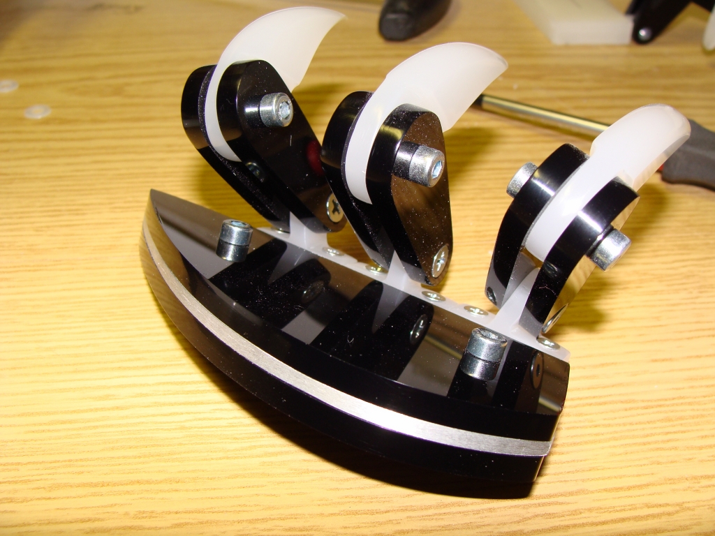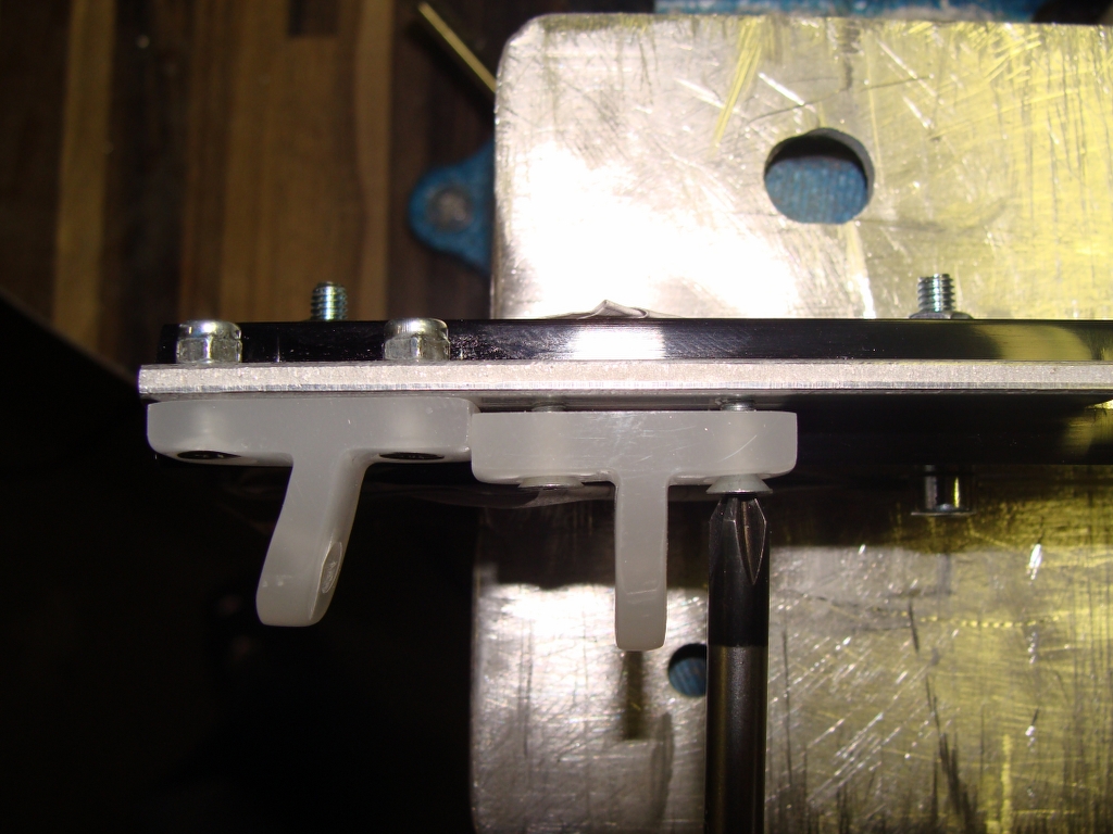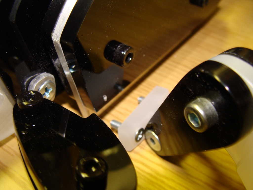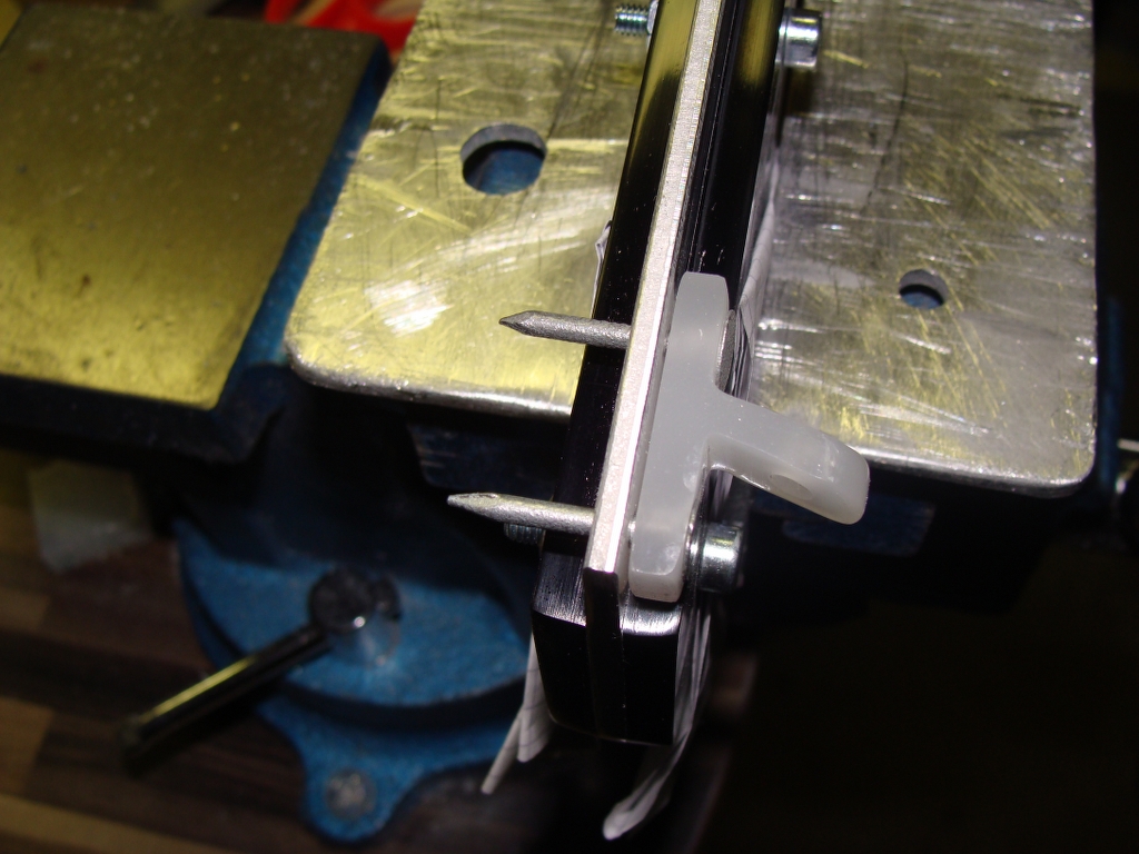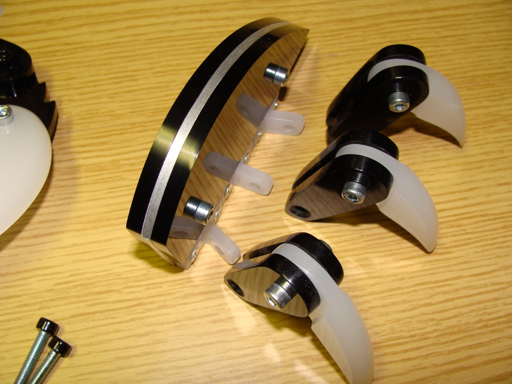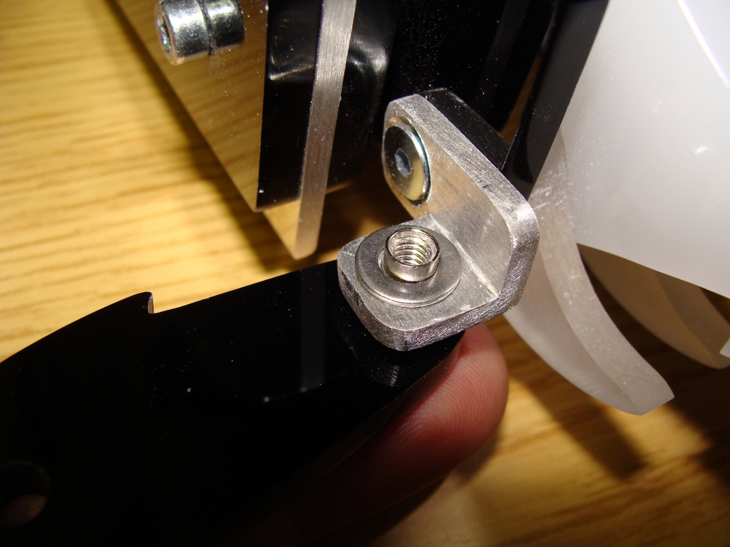 1. Du bringst die Buchsen in den Freiräumen zwischen dem Mittelteil und den Fußhalterungen an und die Platine dann irgendwie unten drunter.