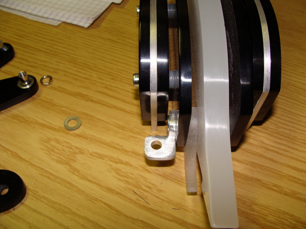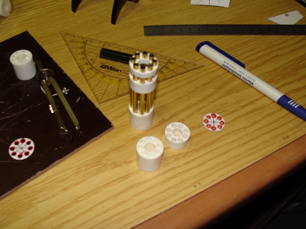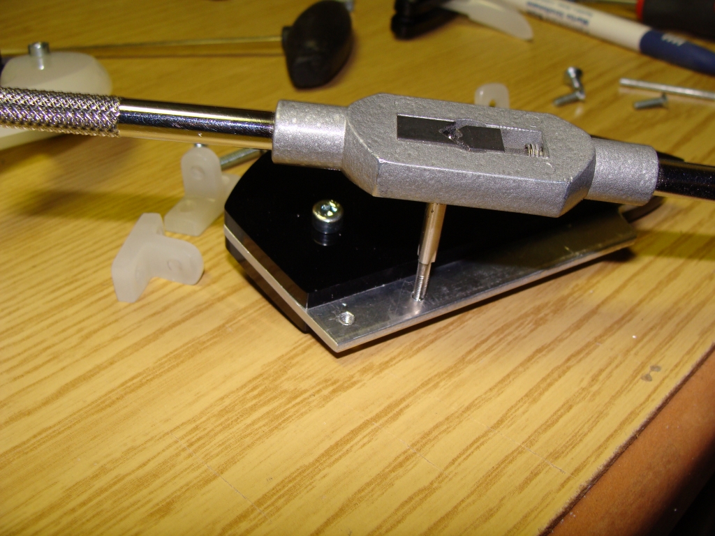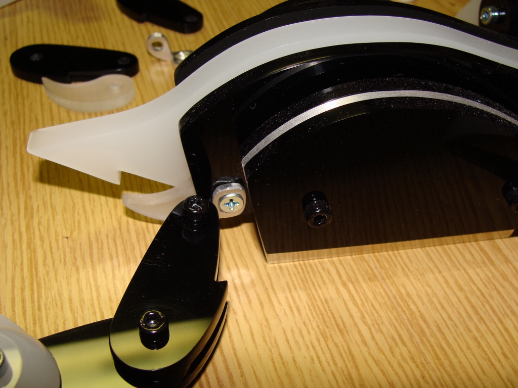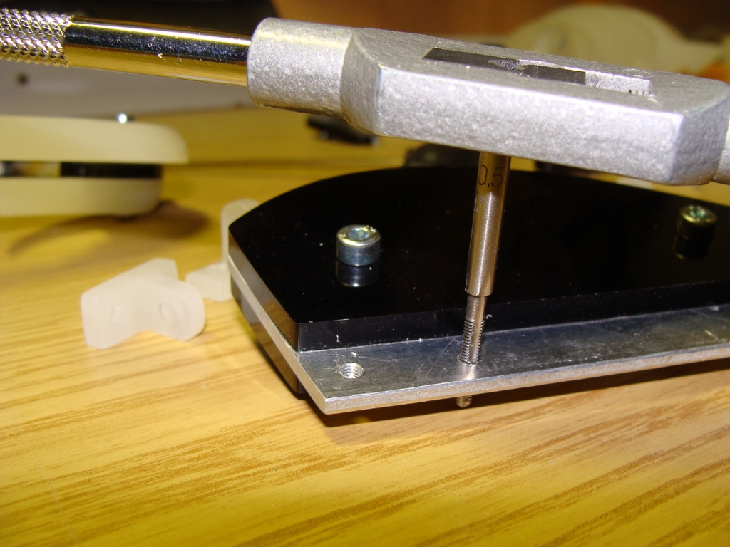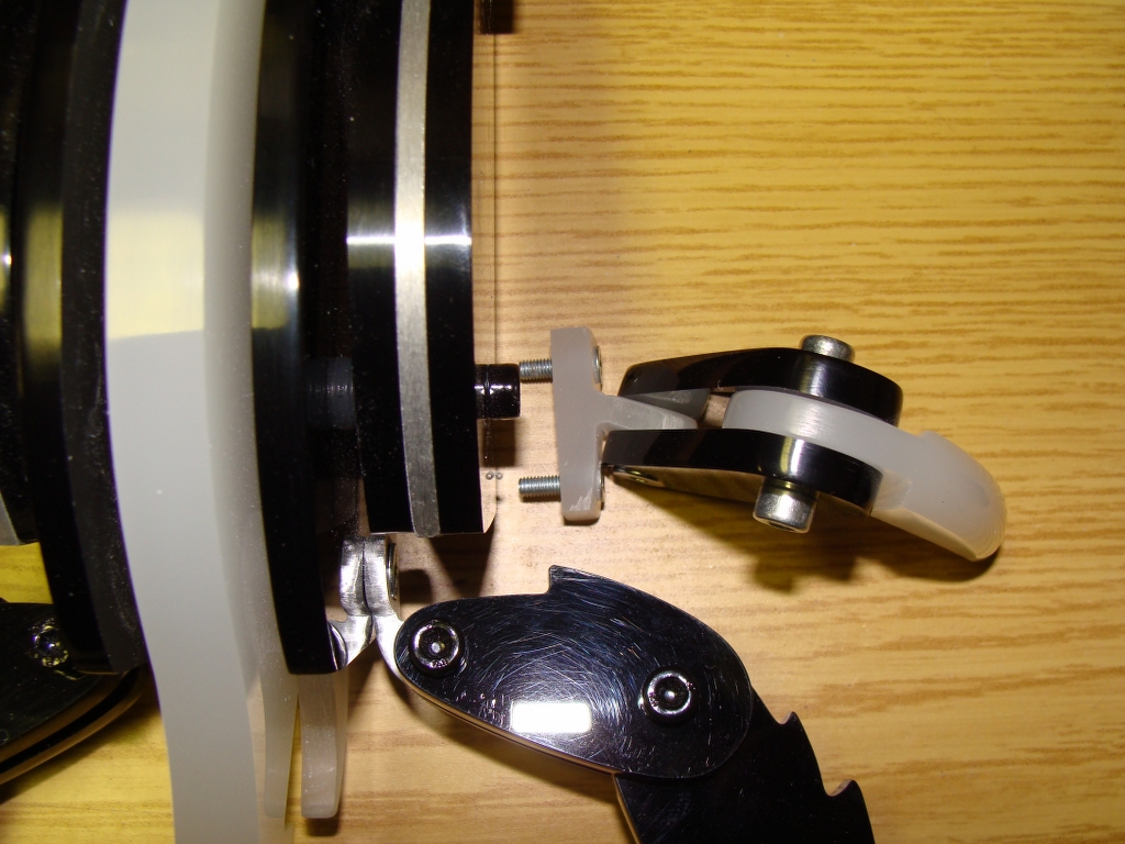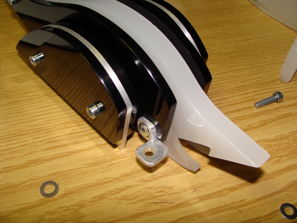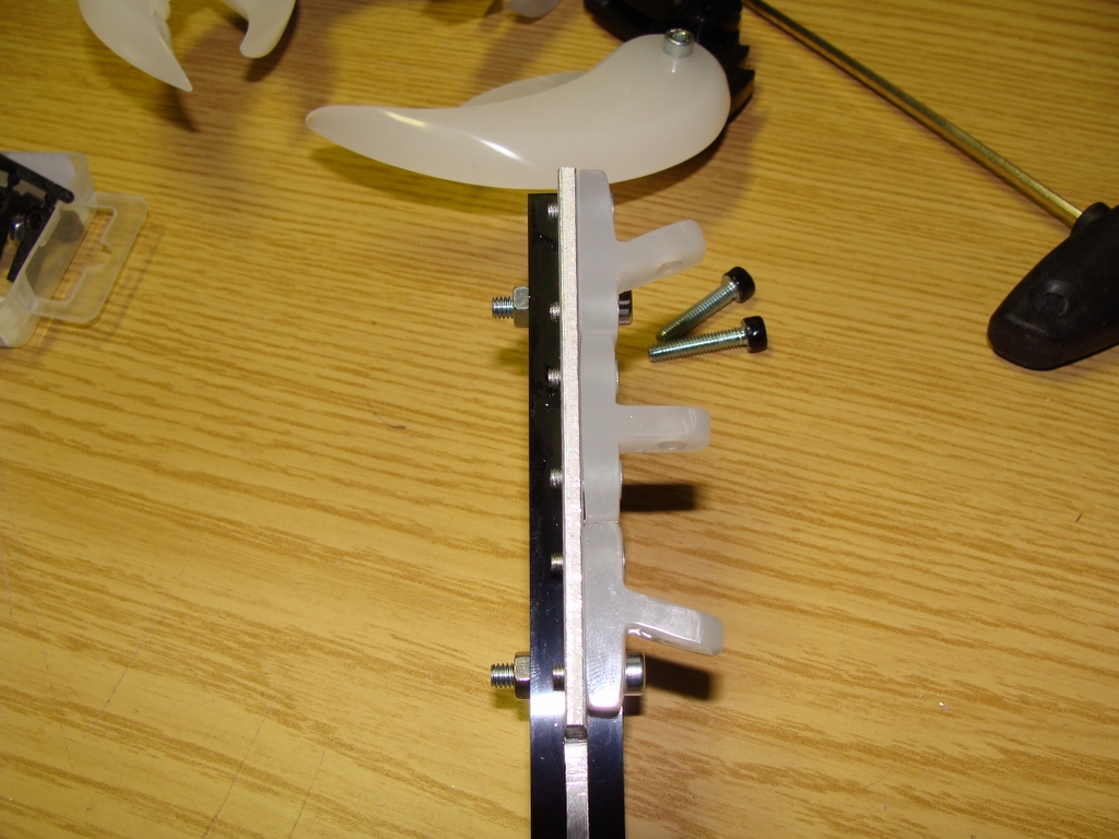 1. Du bringst die Buchsen in den Freiräumen zwischen dem Mittelteil und den Fußhalterungen an und die Platine dann irgendwie unten drunter.