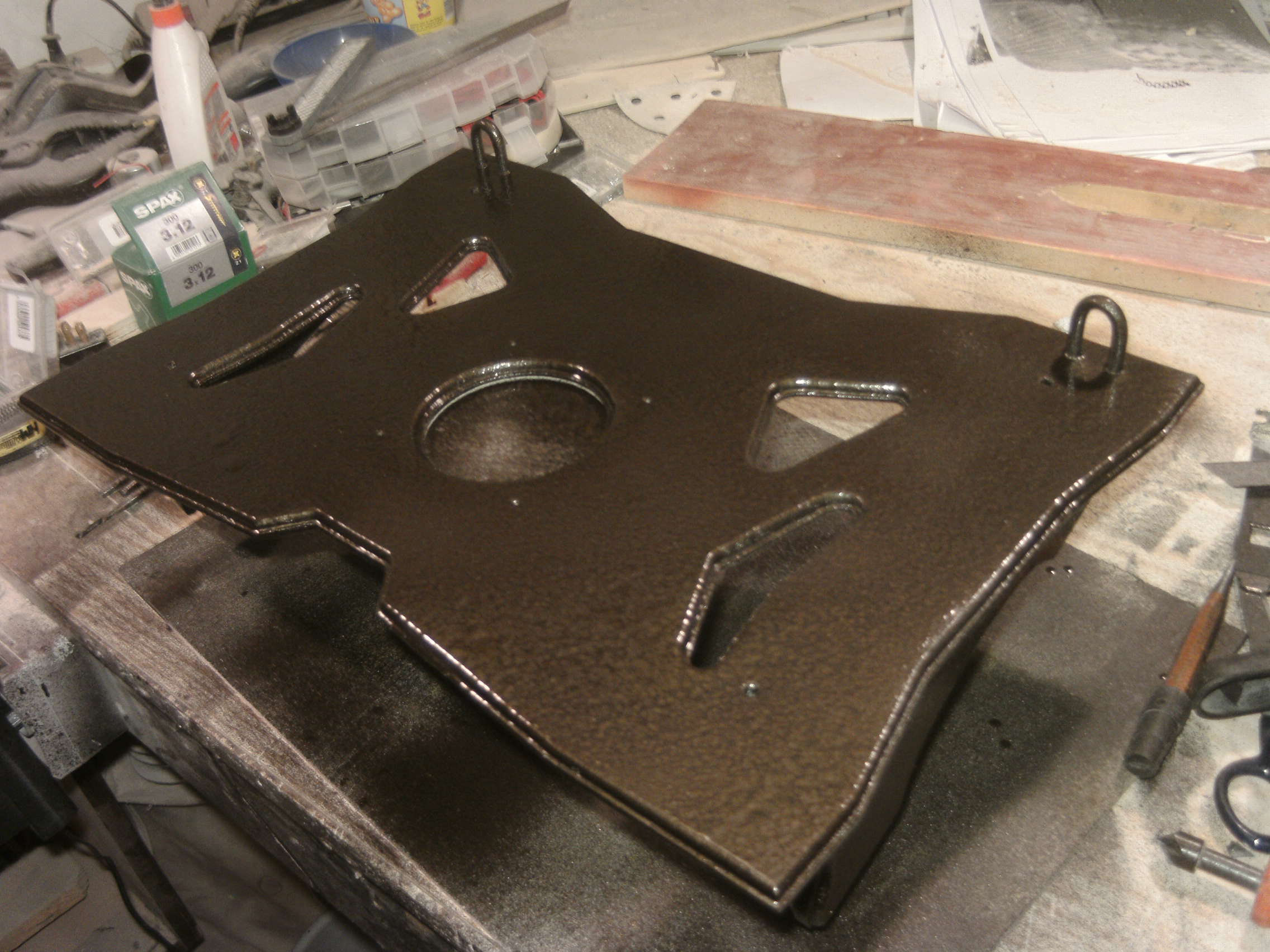 its hammerschlag spray can from max bahr, baher eigene. if you really lay it on thick and keep the sprayed side upwards then it gives you a great hammered look.It looks good, what kind of paint dou you use to get this uneven surface?