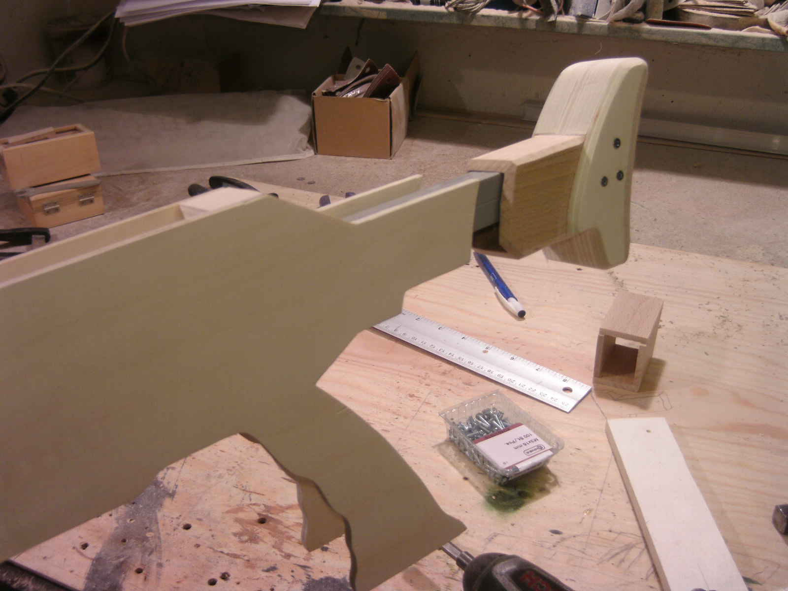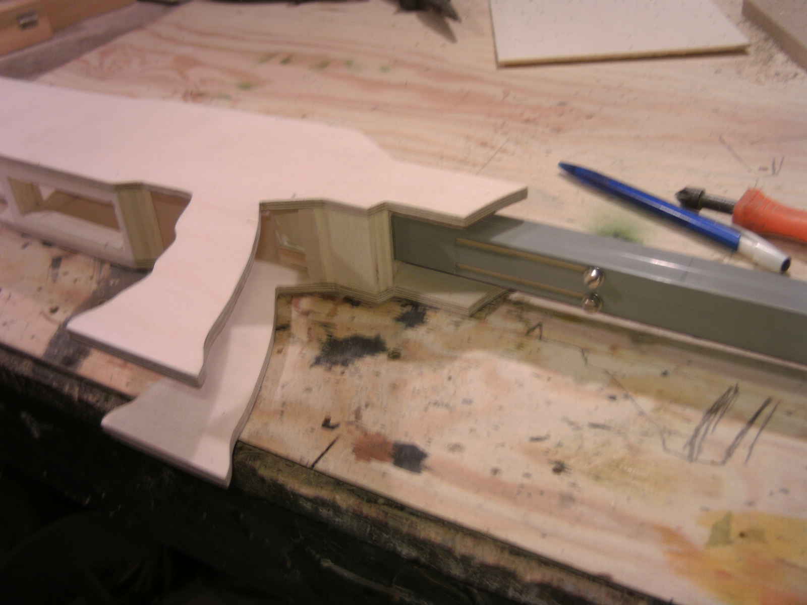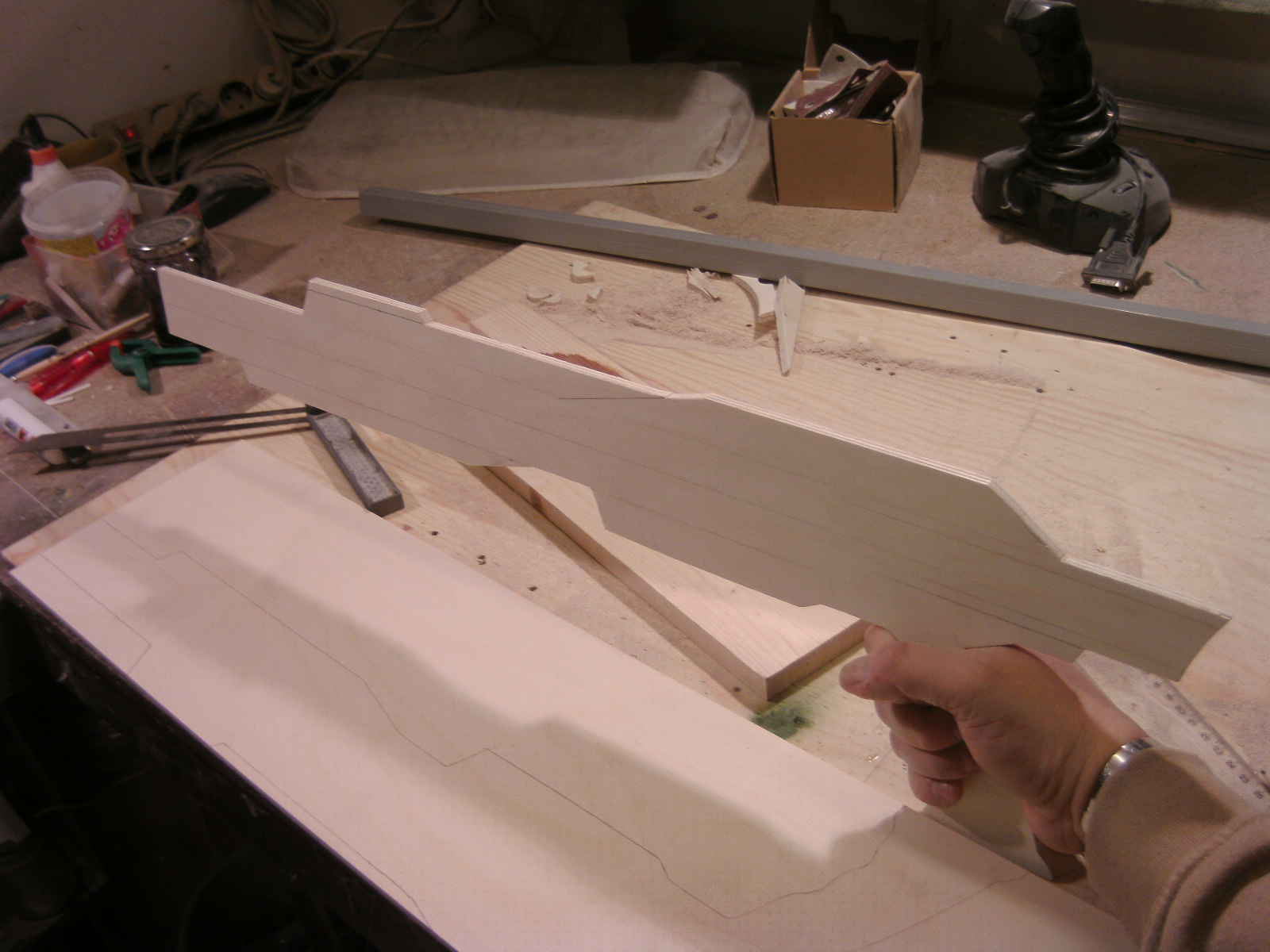 die ersten bilder. anyway the main fusilage ist hier sichtbar auch wenn der griff abgesägt wird danach, hatt ein bessere idee dann.
