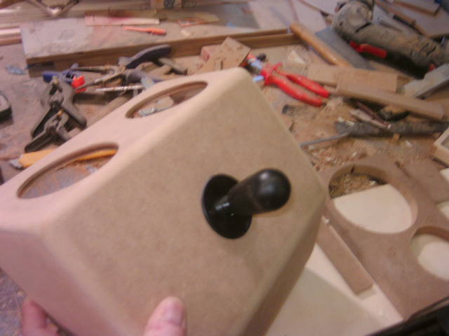 hab schalter montiert, der BITCH WINS, YOU WIN ampel halter mit stopuhr auch ist fertig, poti ist drin, der runner test habe ich auch gemacht. schalter für on off, leds on off, motor on off und hotwire samt sirene on off sind montioert. der kabel cinch zum spätere spiele stange ist auch montiert.