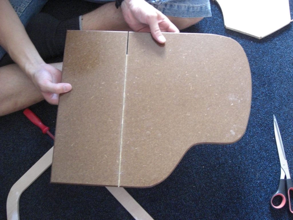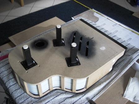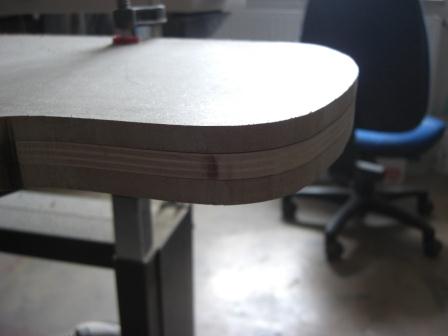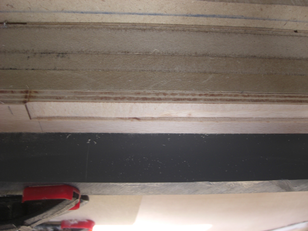 Die untere und oberste Platte ist aus MDF und die mittlere aus Multiplex.