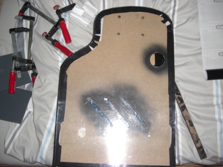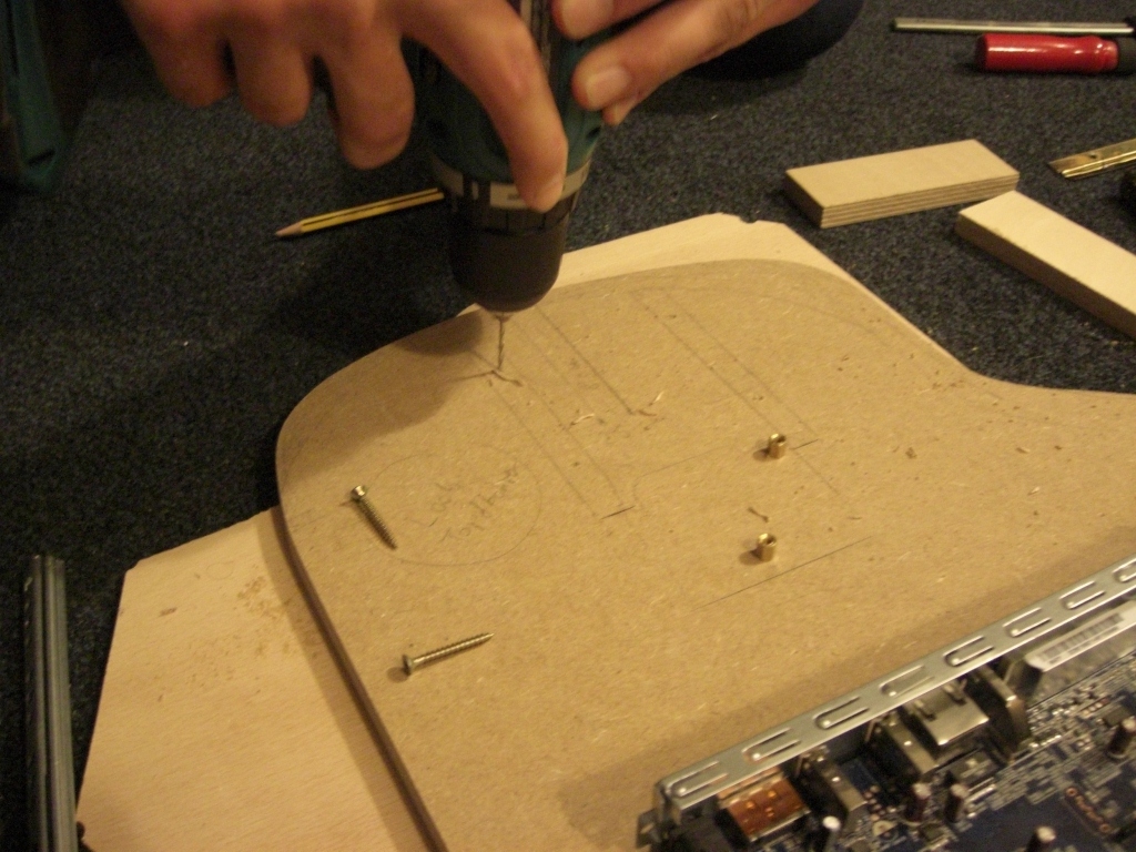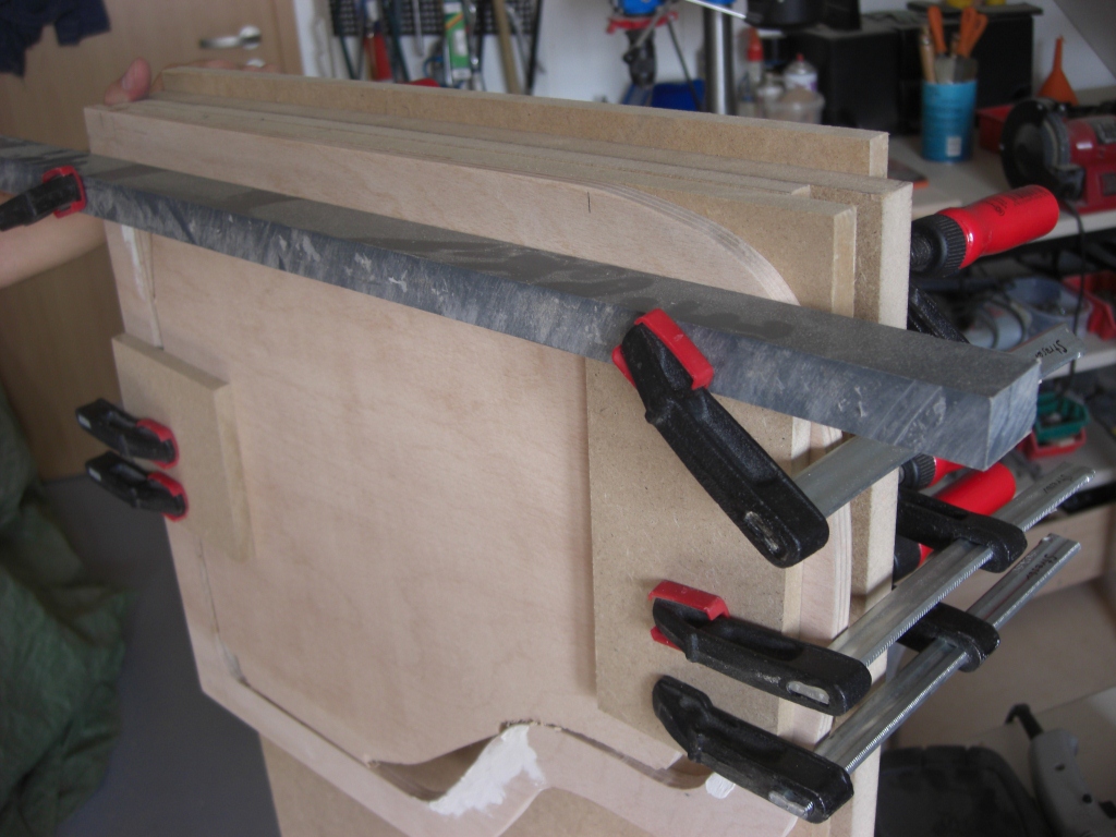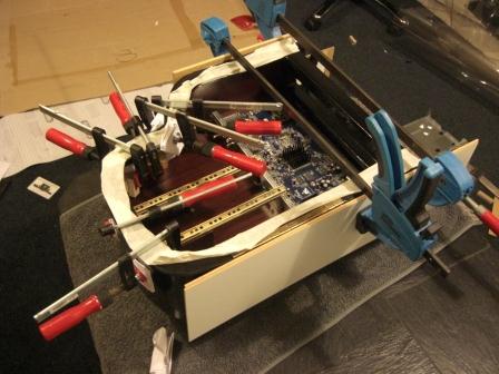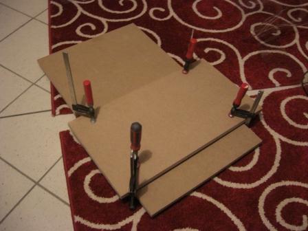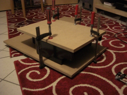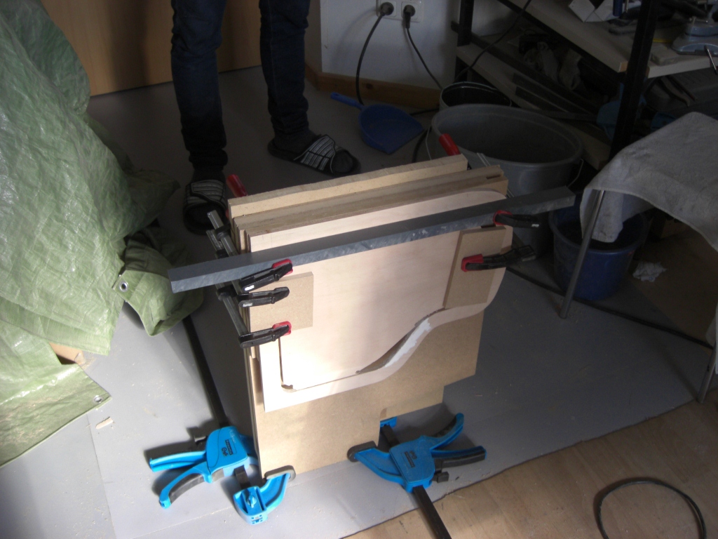 Anschließend habe ich die drei Platten mit Schraubzwingen und mit Schrauben fixiert,