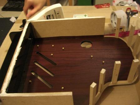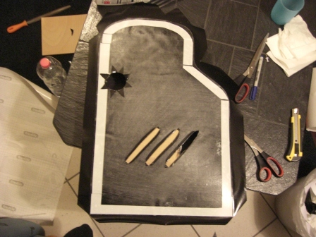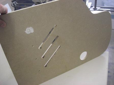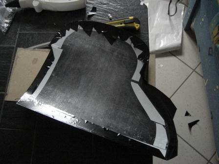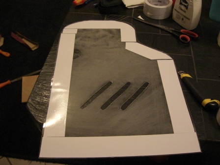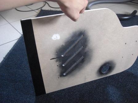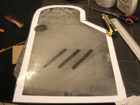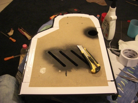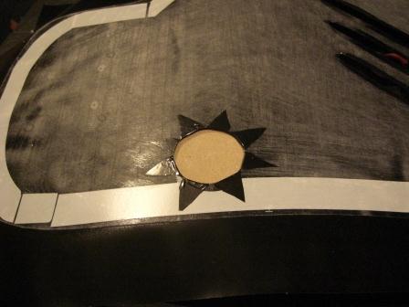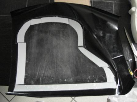 Nachdem man es bezogen hat, die Löcher mit Cuttermesser einschneiden und umklappen. (siehe Bilder 149 und 150)