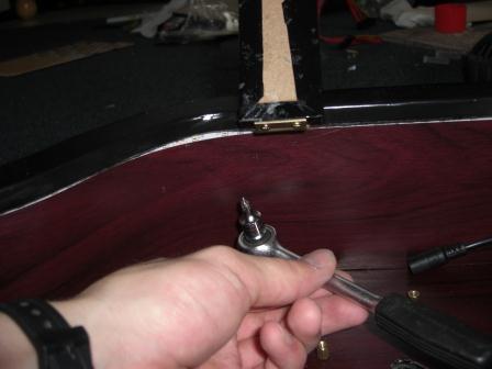 5) Bohren und Anschrauben des Ständers. Sehr sehr fummelige Angelegenheit! Habe die Löcher mit einem Handbohrer aus dem Miniaturmodellbereich benutzt und damit zwei Löcher gebohrt. Anschließend mit einer Knarre den Ständer mühselig angeschraubt. (Bilder 169-170)