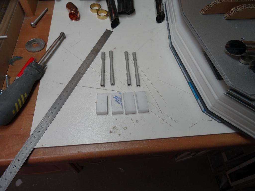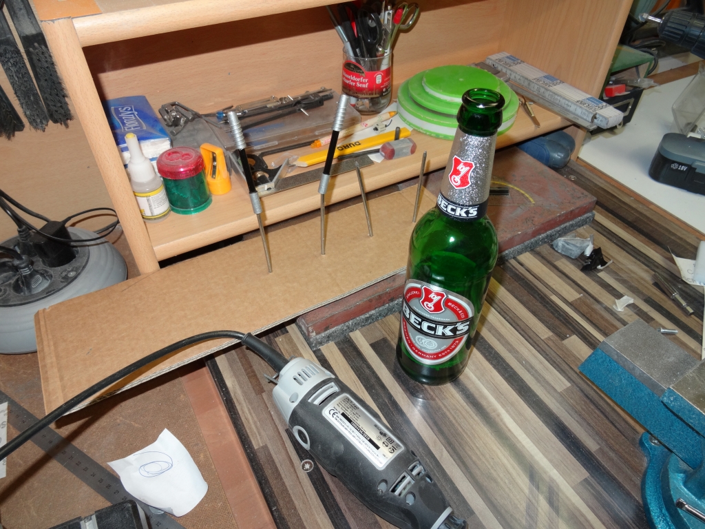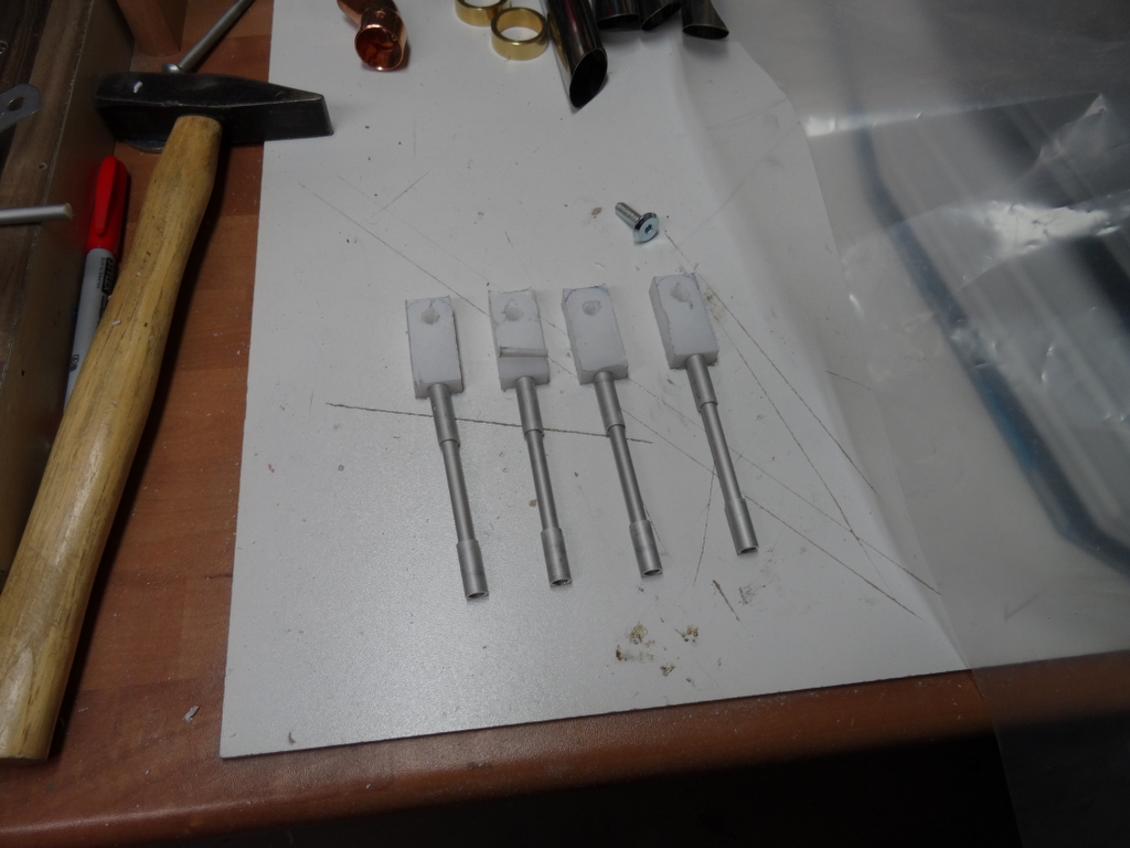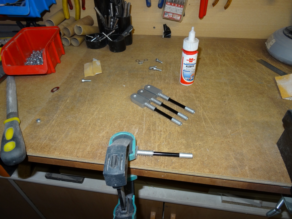 am Wochenende hab ich die kleinen Kanonen schon mal zusammen geklebt und lackiert, wenn der Lack getrocknet ist, werden sie zusammen geschraubt