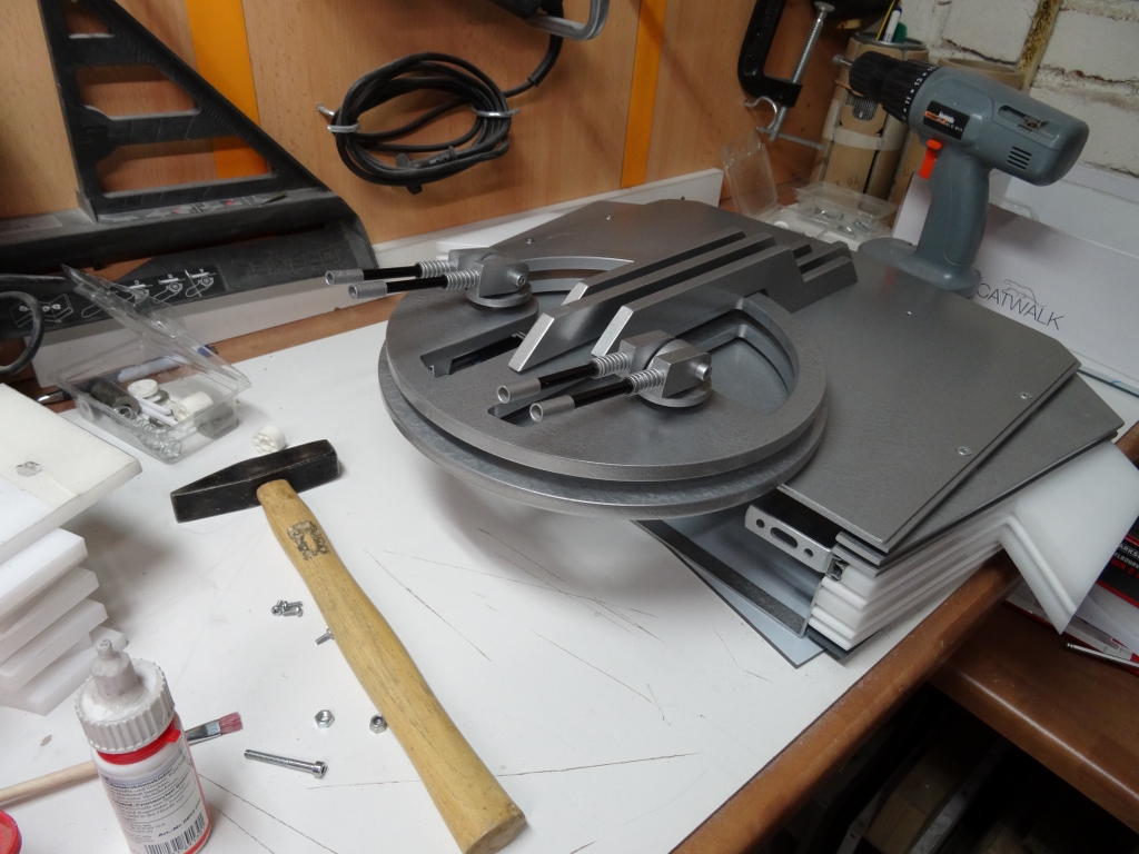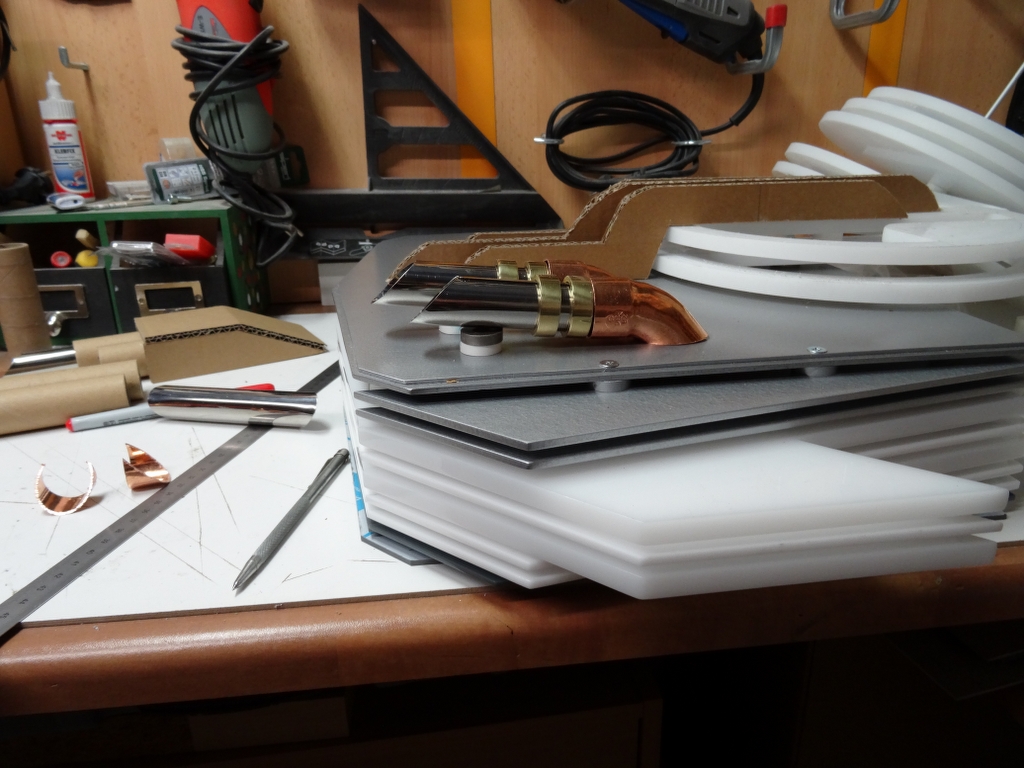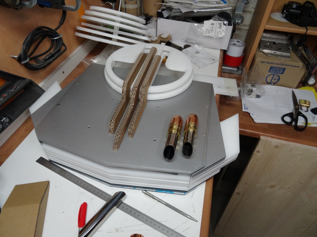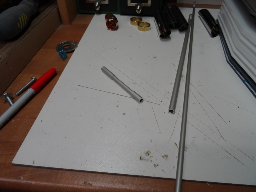 am Wochenende hab ich die kleinen Kanonen schon mal zusammen geklebt und lackiert, wenn der Lack getrocknet ist, werden sie zusammen geschraubt