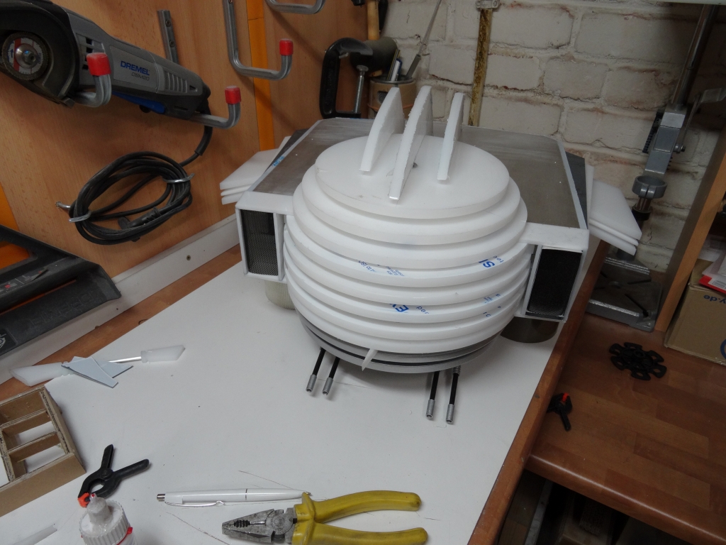 Waren bei deinem Entwurf auch schon seitlich an der Kugel die eckigen kästen?