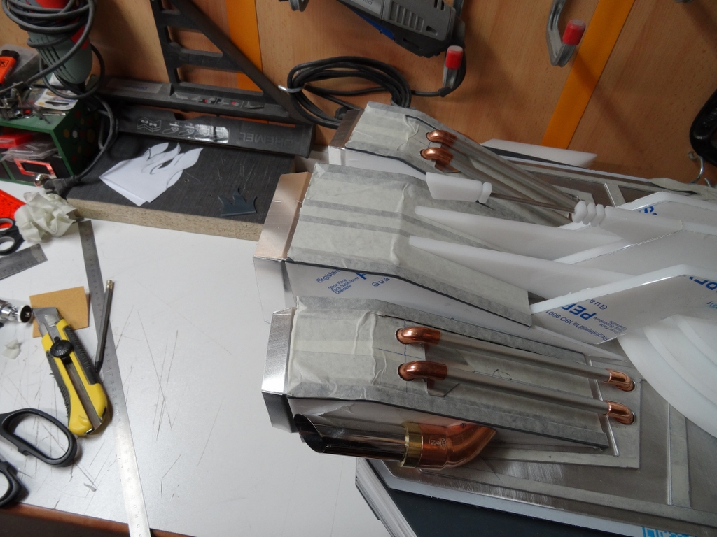 ab jetzt gibt es nur noch Handarbeit, die Aluteile werden noch lackiert und ein paar Stellen müssen noch poliert werden. Ich bin sehr gespannt wie es am Ende wird, ob es zusammengebaut genau so aussieht wie ich es mir vorgestellt habe