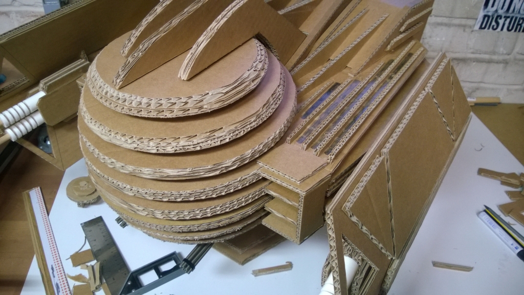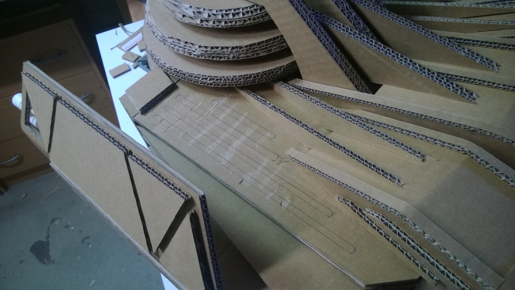 +1 für dir zwei einzelnen Kanonen (Minigun passt halt irgendwie nicht zum Thema...aber auch schick). Auch die neue, obere Abdeckung sieht besser aus. Vielleicht könntest du es noch einmal mit weniger, aber schrägen Lamellen versuchen, damit man mehr von der Gitterstruktur sieht?!