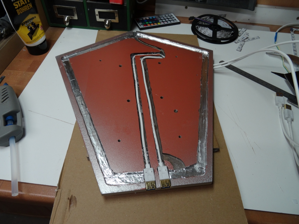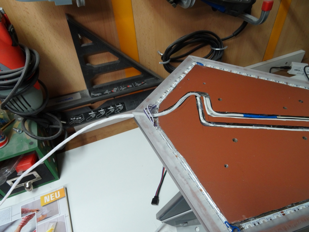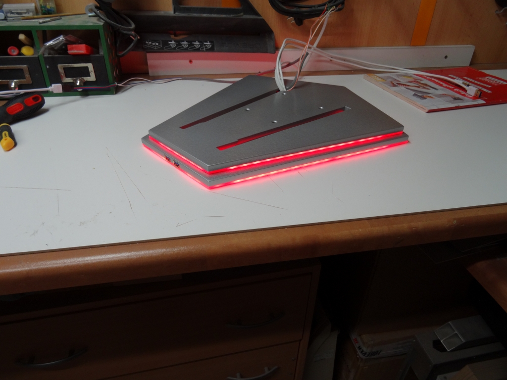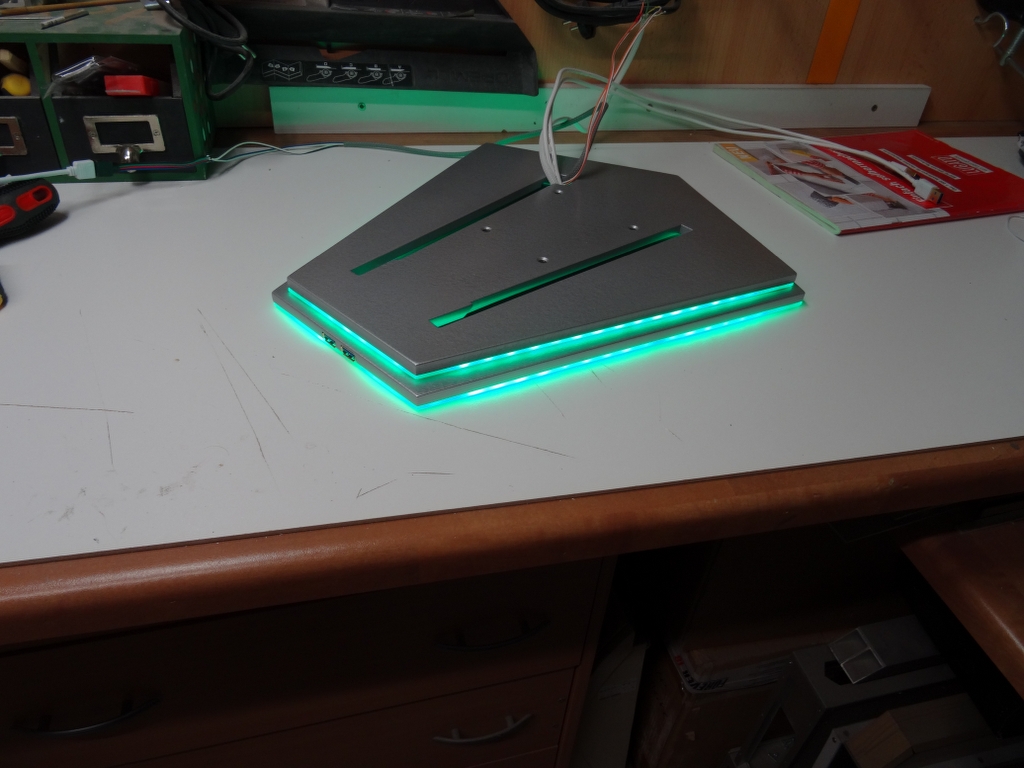 Beleuchtung schaut klasse aus. Wolltest die die Fleyligth zuerst aufs Plexi kleben so das das Alu in der Nut reflektiert ?