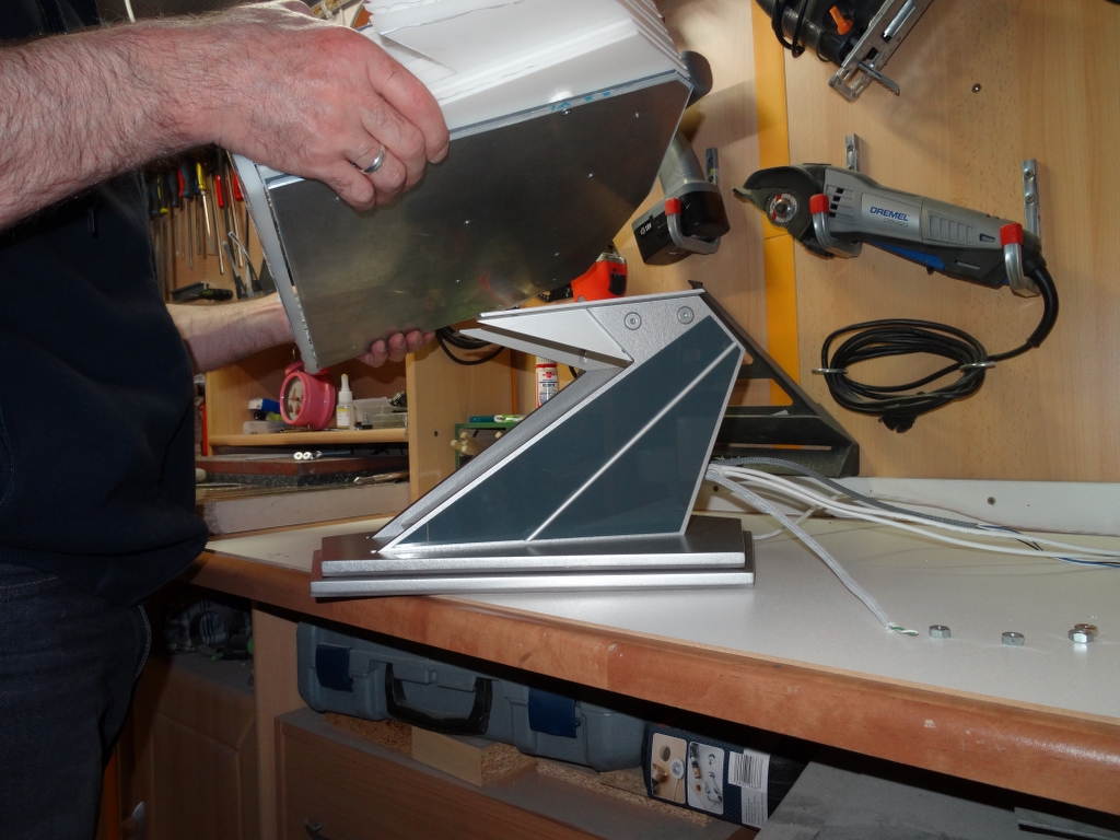 heute hatte ich bissel Zeit gehabt um hier weiter zumachen, erst Gehäuse an den Fuß fest geschraubt , die Konstruktion ist sehr stabil :pump: ich bin sehr zufrieden :thumbup: