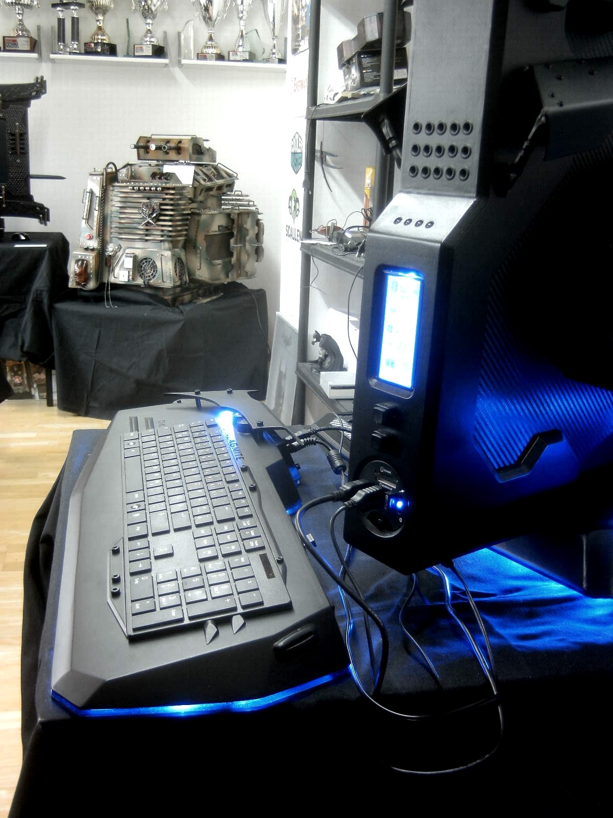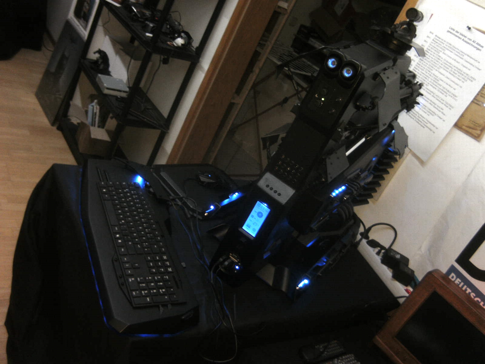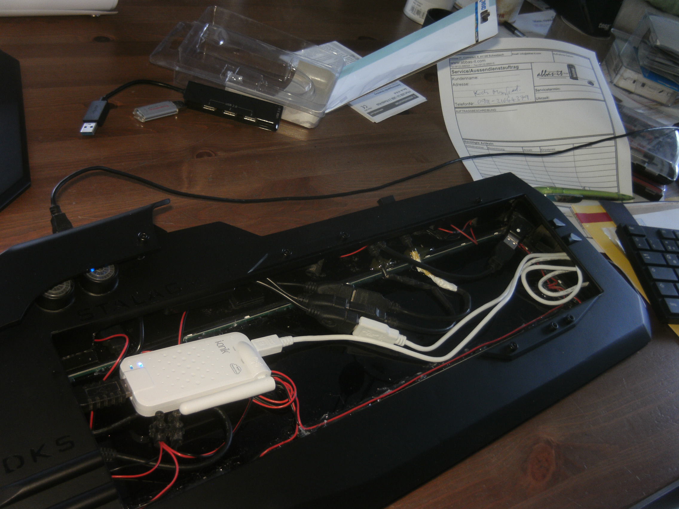 das ganz tastatur stzeht auf 2 lagen plexi mit bleu LEDS und ein balu base plexi. ich kann das ganze sowohl von unten wie oben aufnachen für maintenance oder wenn ich was anders auf das cloud port stecken möchte. ich habe mich aber für das externe USB port als cloud port umentschieden da ich dann jederzeit auch spontan was drauf stecken kann und es wird automatisch zum cloud speicher.
