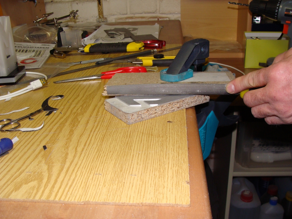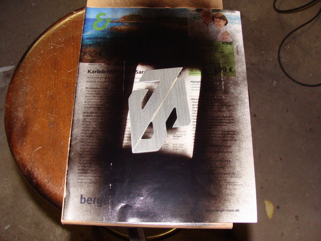 es wird aus 2mm Aluplatte gemacht, gebürstet und schwarz weiß lackiert...so der Plan... mindestens