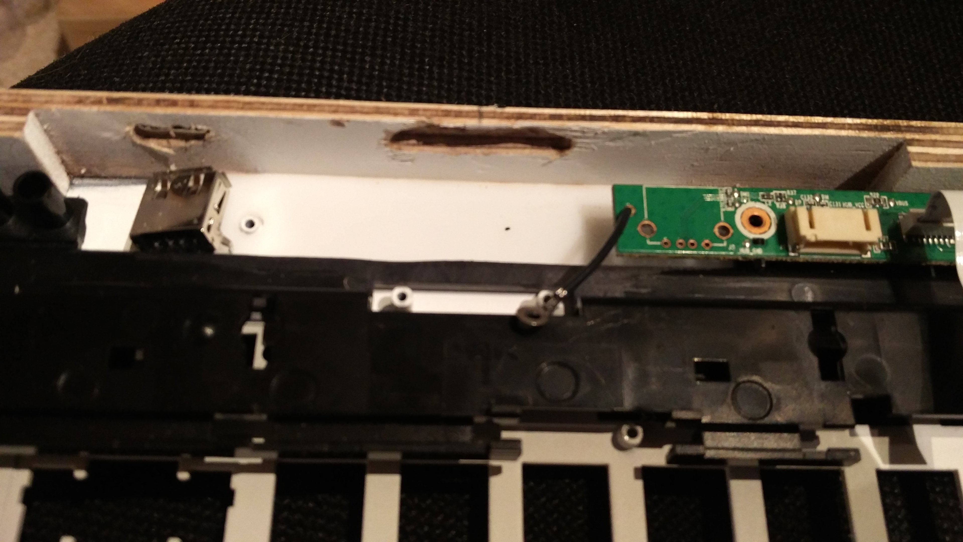 Der USB Port ist hier nur grob ausgedremelt, ich muss ihn noch ein wenig nachbearbeiten, damit es einigermaßen gut aussieht, denn es kommt noch Furnier drüber, sodass es erst dann wichtig ist, wie der Ausschnitt aussieht