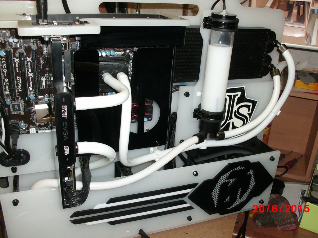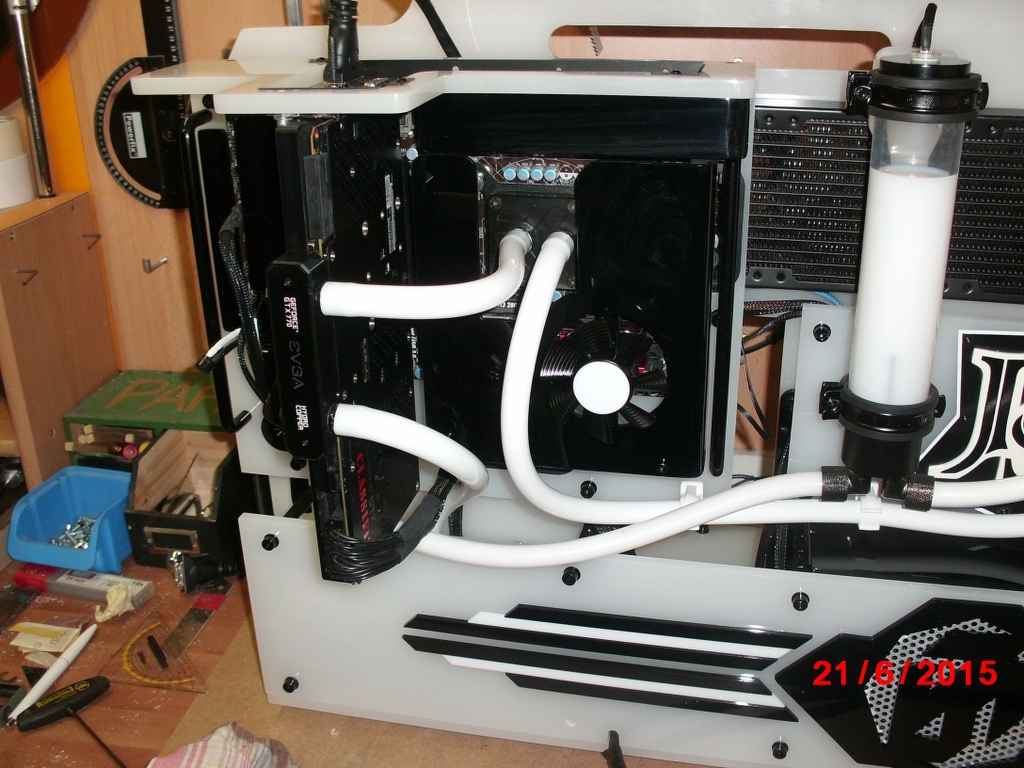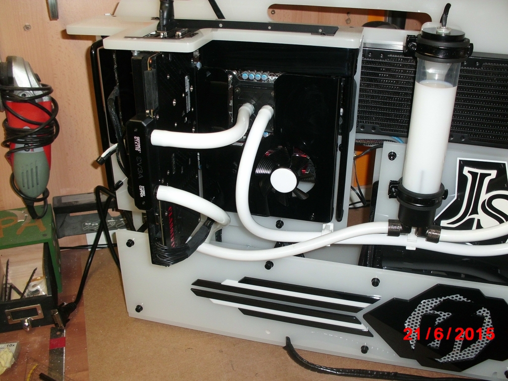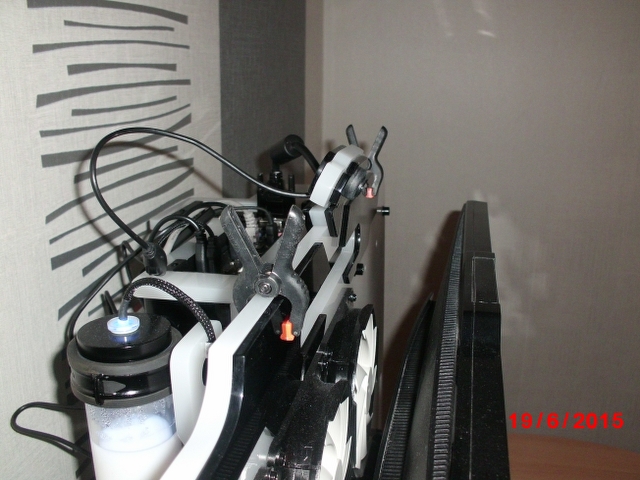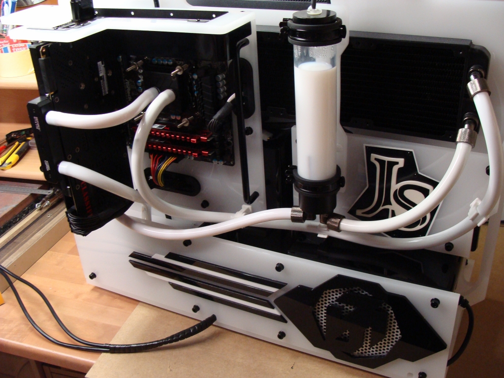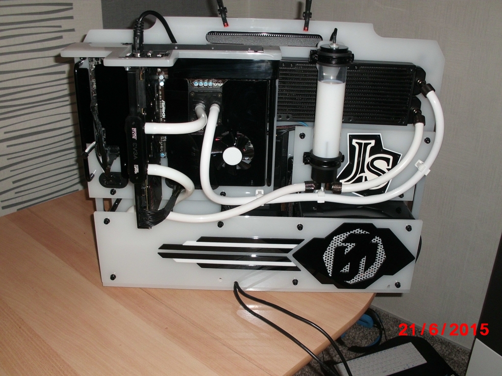 Echt super arbeit, aber eins hab ich jetzt gesehen was mir nicht so gefällt, und zwar die Halter mit denen die die Schläuche fest gemacht hast. Diese würde ich auch noch aus 3 Schichten Plexi selber machen. Weis/Schwarz/Weis zusammen kleben, dann ein Loch rein Bohren und aufschneiden. Dann kannst da den Schlauch genauso einklipsen und es passt besser dazu.