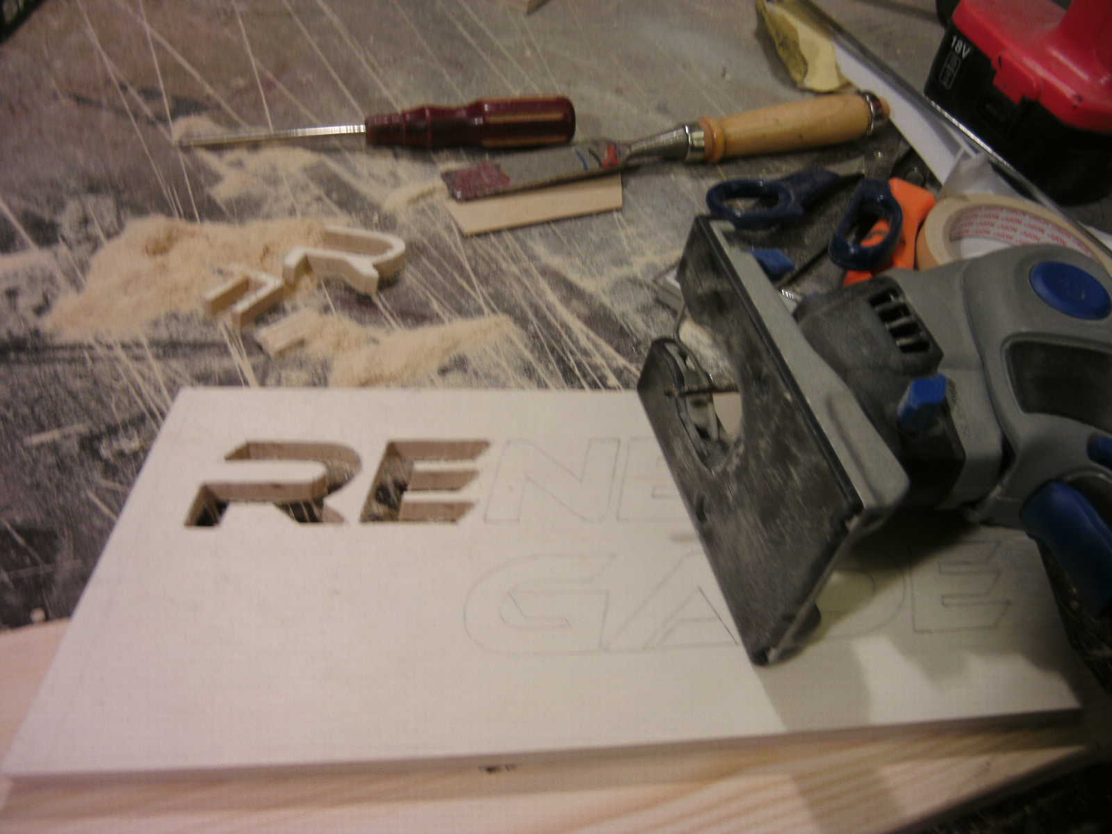 Das wollt ich aussägen neme deswegen dünne MDF platten weil sonst siehts aus als wäre der schriftzug / das logo ganz weit hinten wenn die platten so 2 cm dick sin
