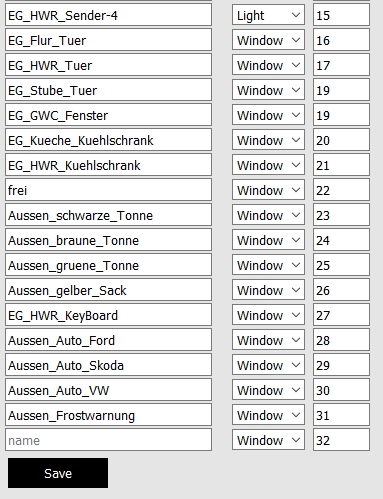 Edit: Eine dritte Lösung gäbe es noch, man lässt die Webkonfiguration wie bisher, allerdings gibt es keine Dropdown-Menüs mehr sondern nur Freitext-Felder. Man müsste also "Alarm", "Light" etc als Text eingeben. Gefällt mir allerdings nicht so richtig, denn das wäre erstens umständlich und zweitens muss man auch hier wieder alles auf Korrektheit prüfen.