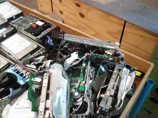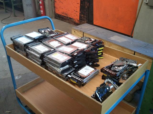 Wir hatten es vor mit einem Hammer zu machen, aber wir hatten nur 45min bis zur Kaffeepause noch Zeit, da bekommt man keine 63 HDDs klein :ninja: